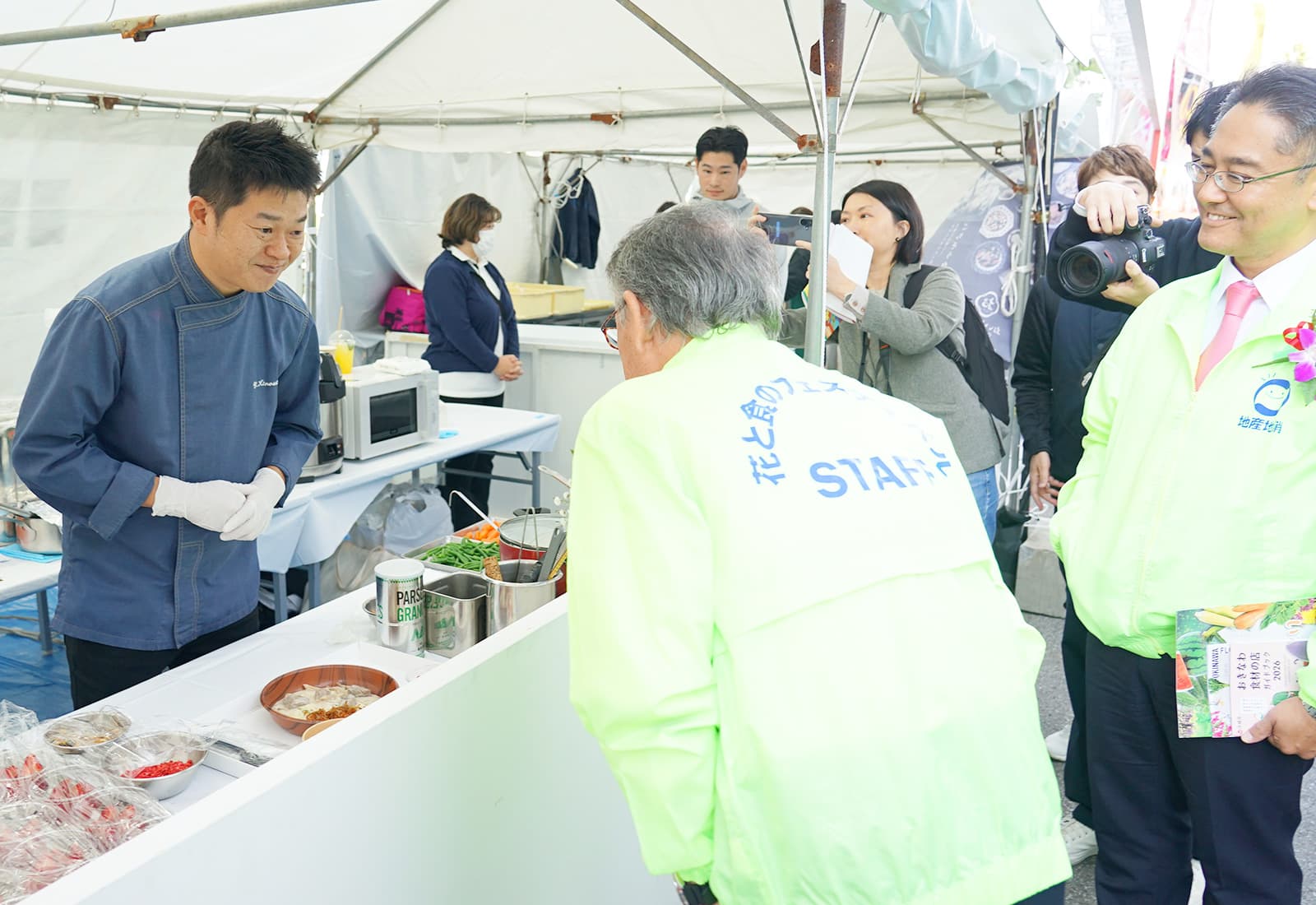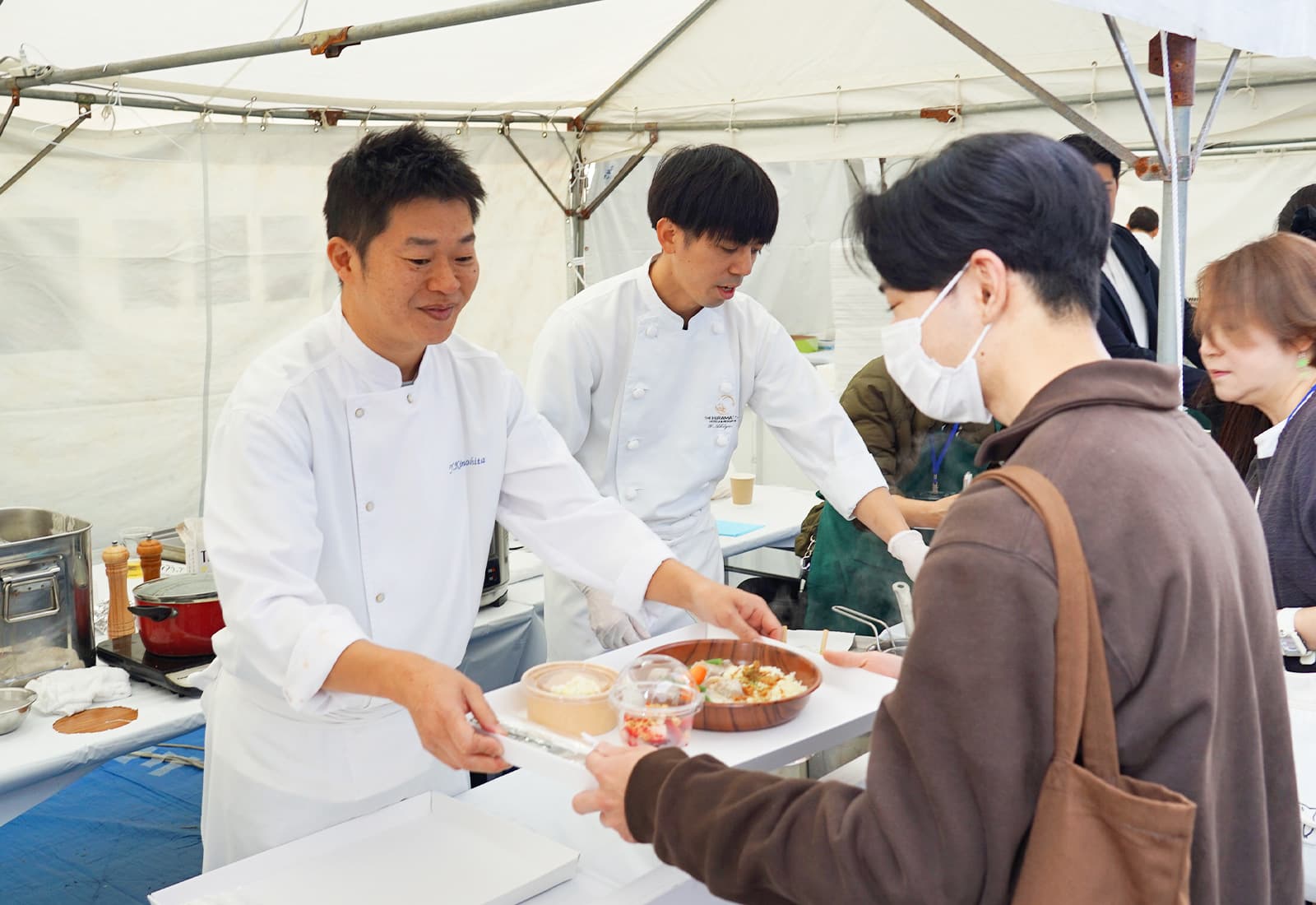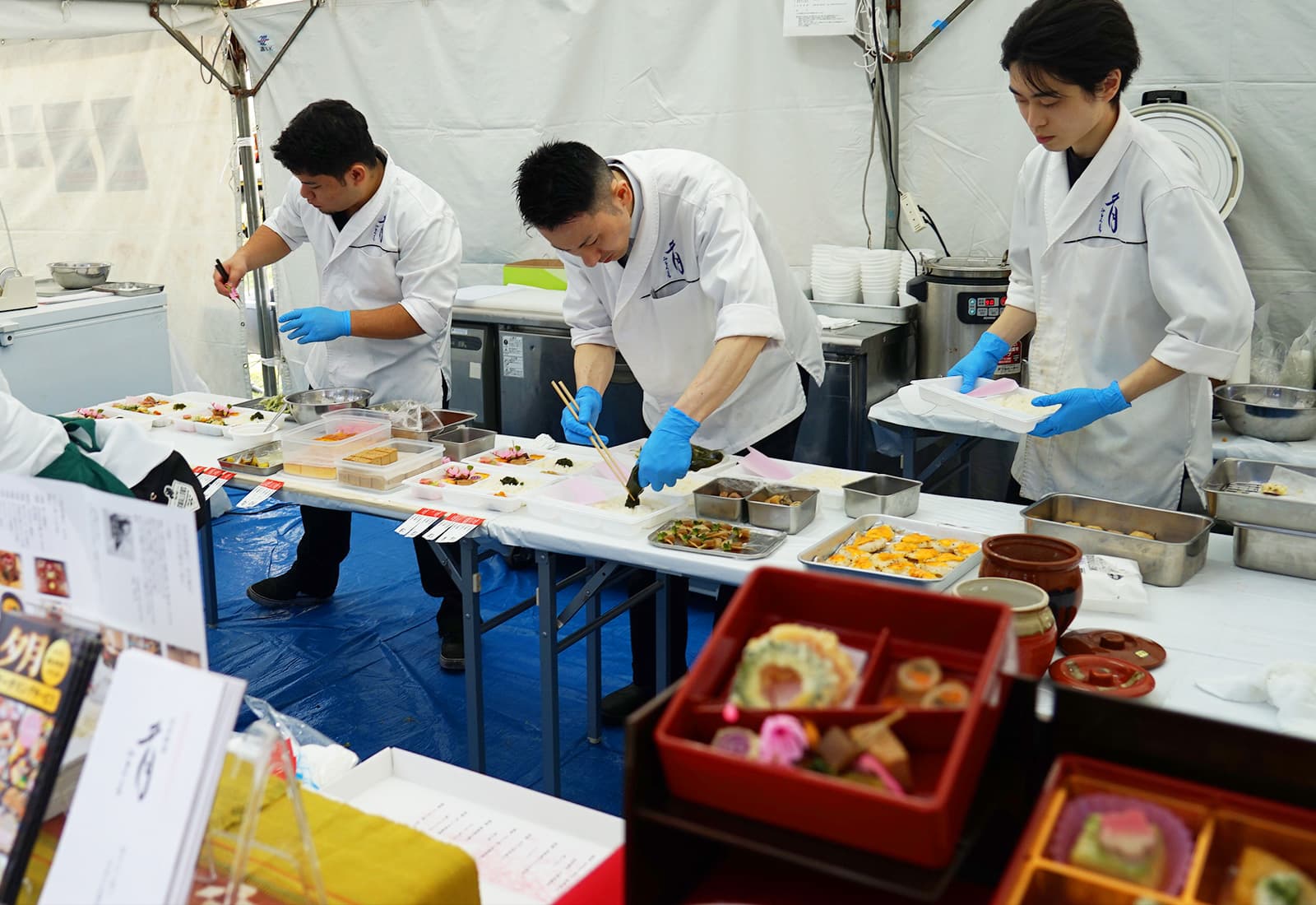 シェフたちが次々にブースへ到着。さっそく準備にかかります。