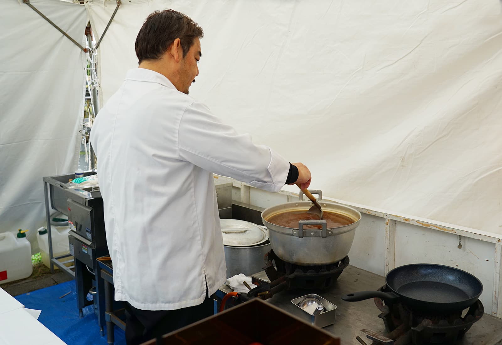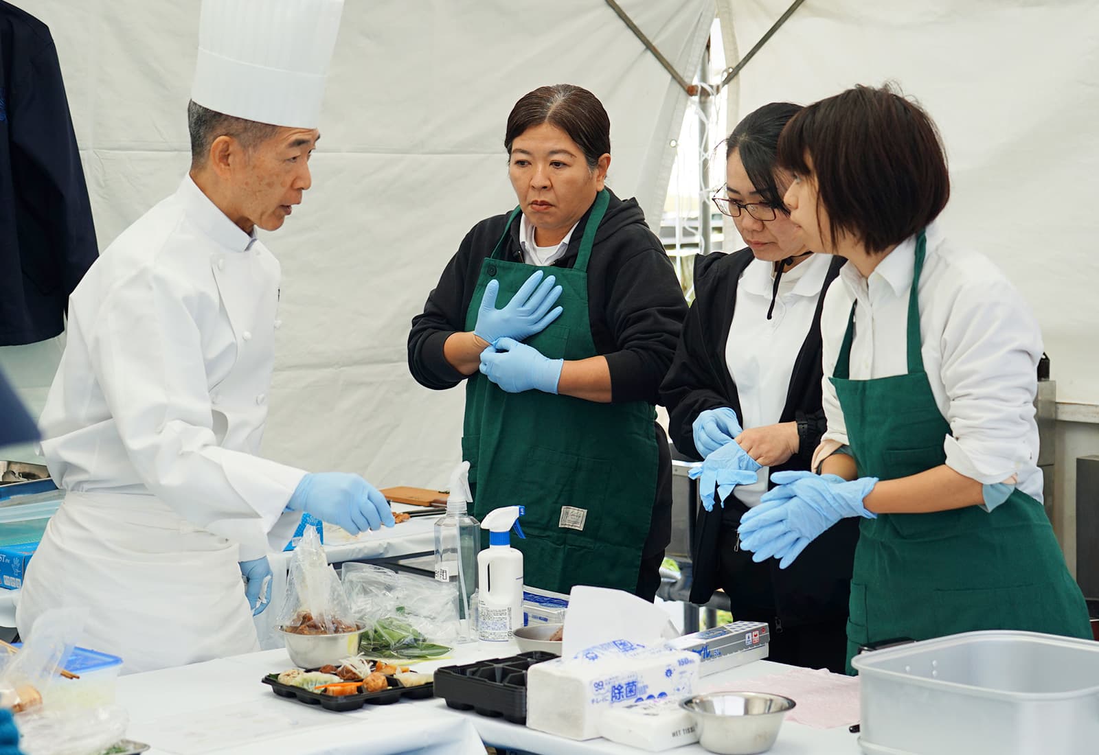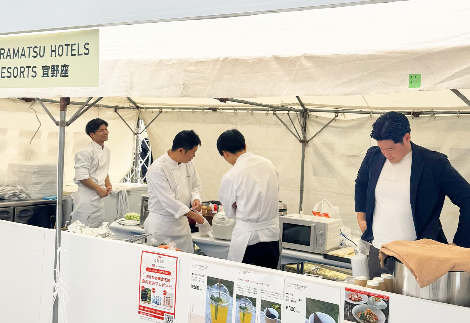 シェフたちが次々にブースへ到着。さっそく準備にかかります。