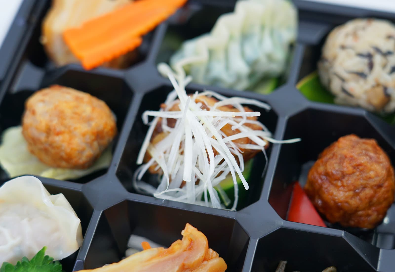 ・昆布(クーブ)イリチー・沖縄ジューシー・白味噌ラフテー・軟骨トロトロ煮・広東餃子・生姜香る丸子・もろみ黒酢肉団子・鶏チャーシュー・海老ニラ餃子