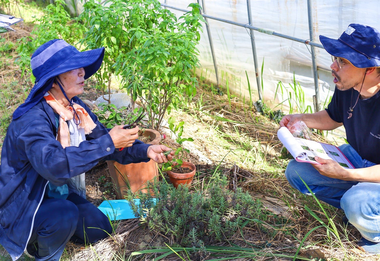 無農薬で安心・安全なハーブだからこそ、参加者の皆さんはその場で葉を摘み取り、テイスティングしながら香りや風味を確かめていきます。 「これ、苦いね」「いい香り!」と、あちこちから感想が飛び交い、活気あるひとときとなりました。