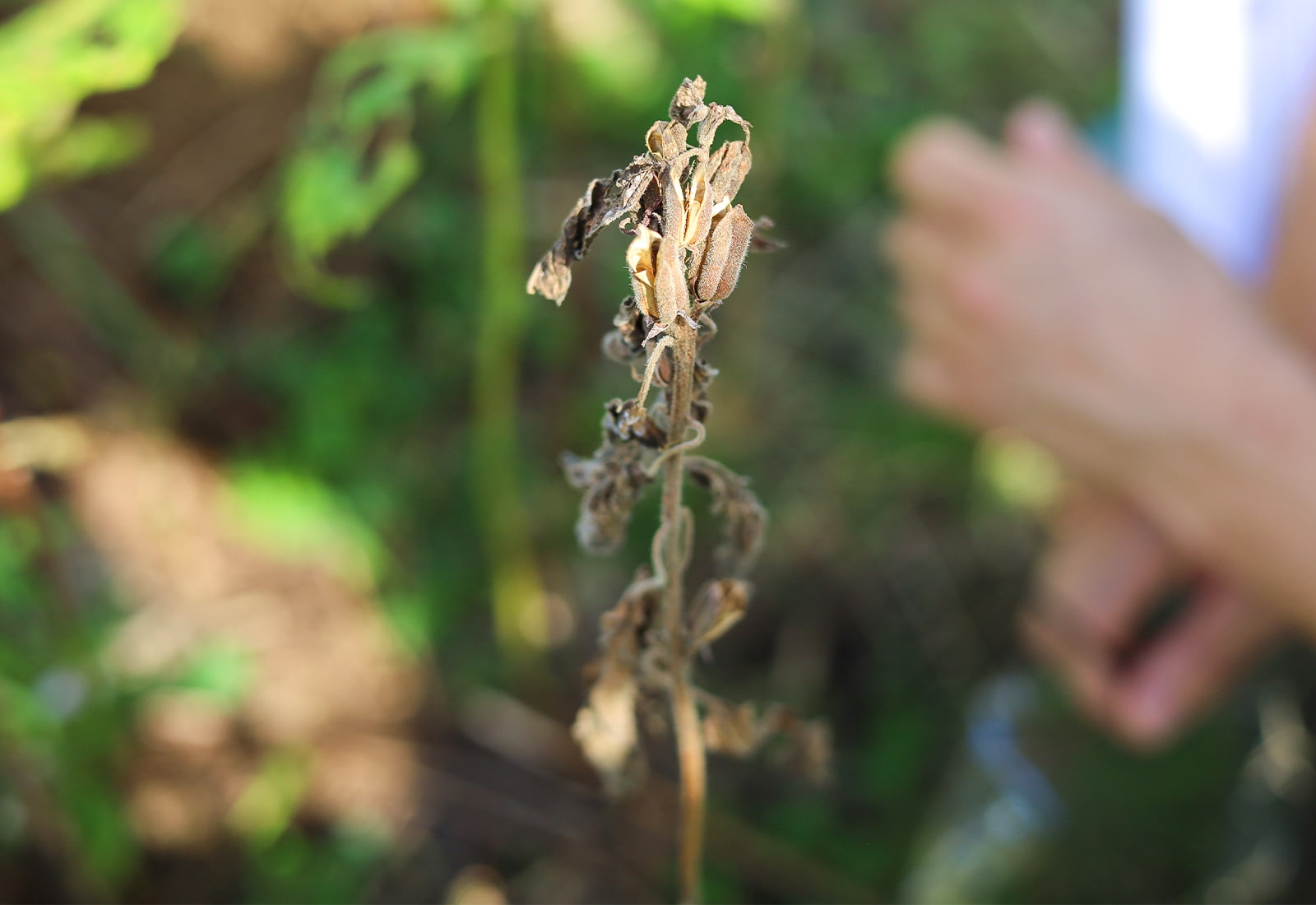 試験的に育ててみているという「ゴマ」。「植物としてゴマを見るのは初めて」と参加者さんから声が上がります。