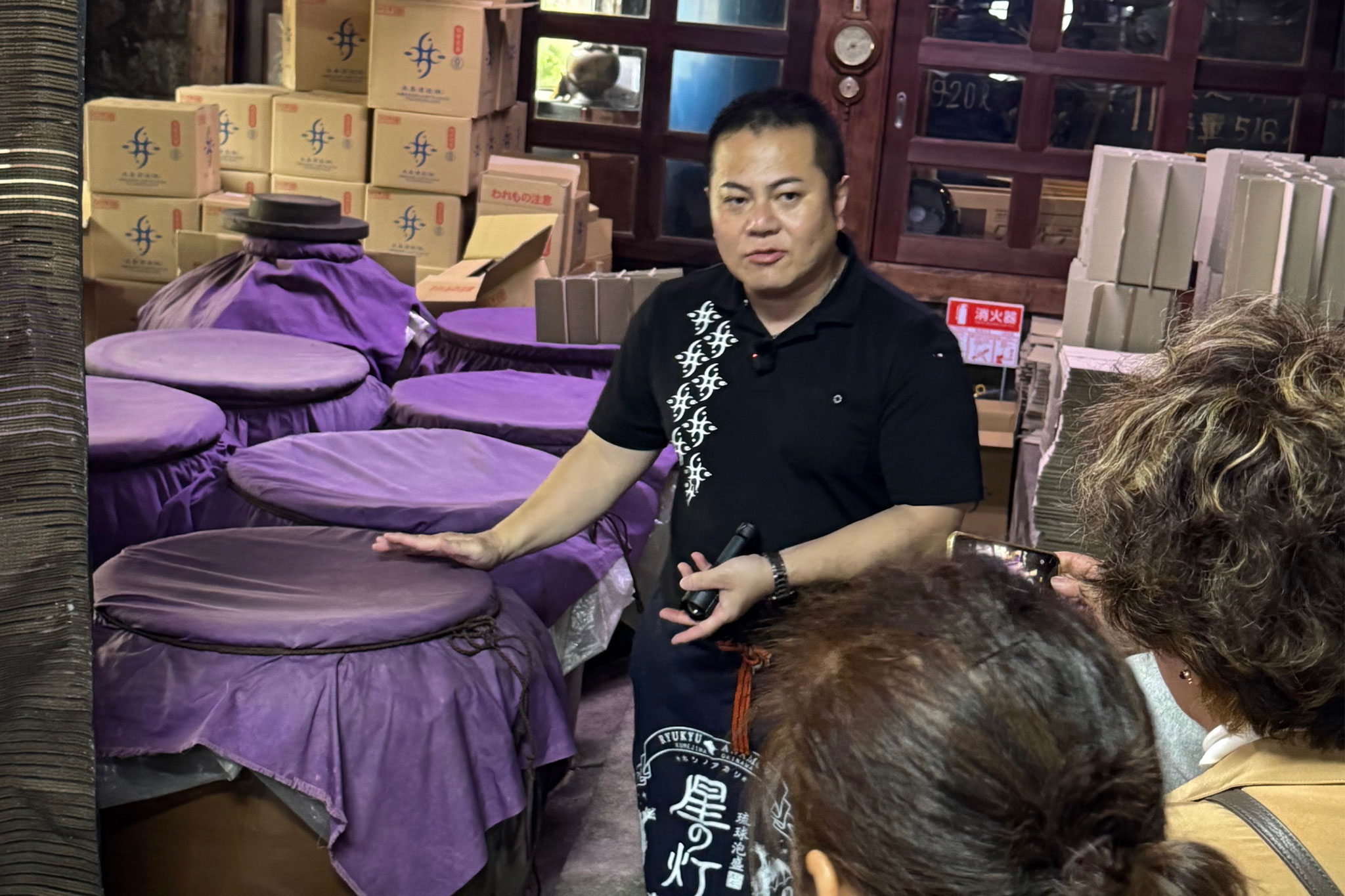 田場さんからは、泡盛づくりの詳細な工程や、黒麹菌の成長メカニズムについて丁寧にお話を伺いながら、蔵の中をご案内いただきました。