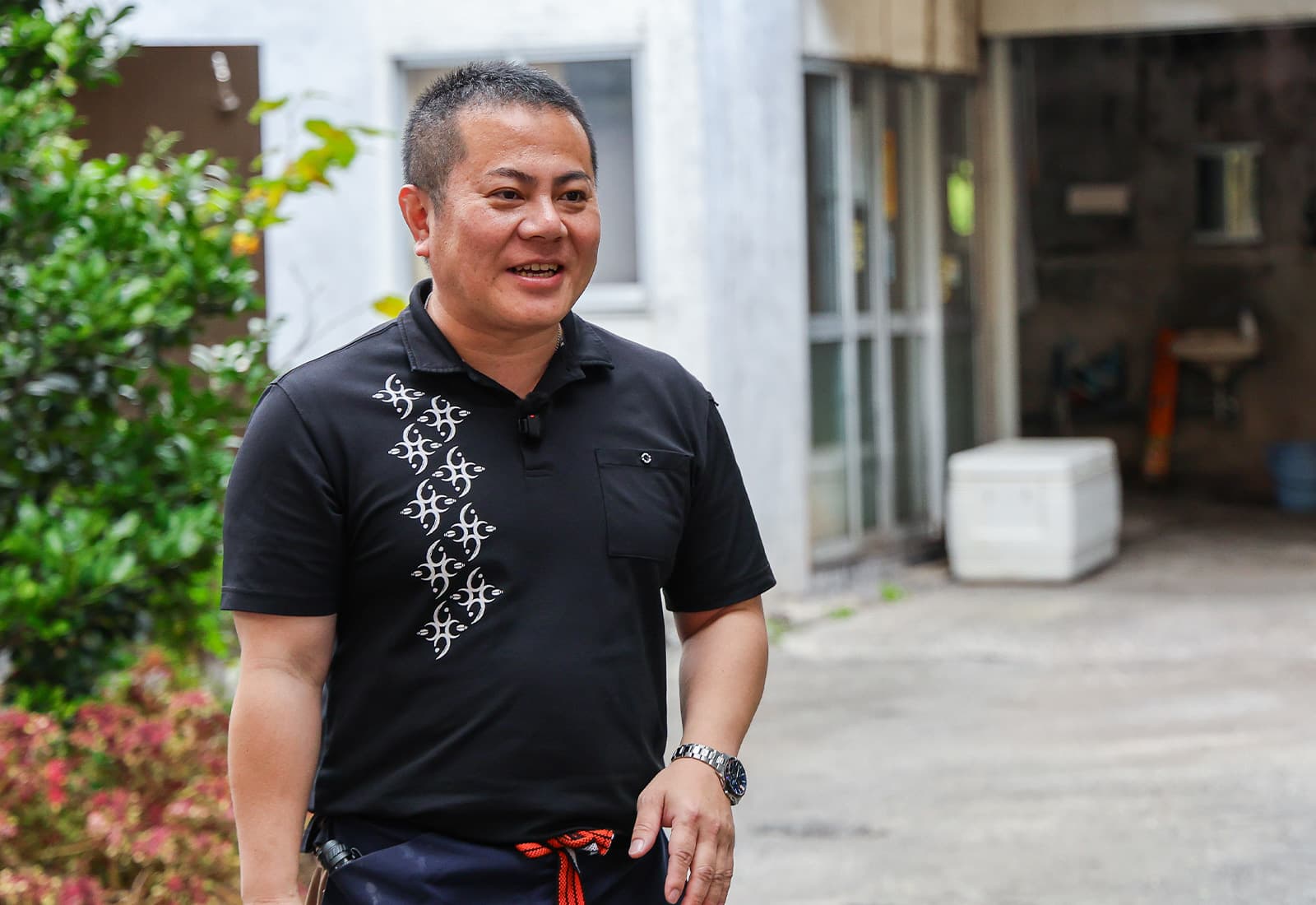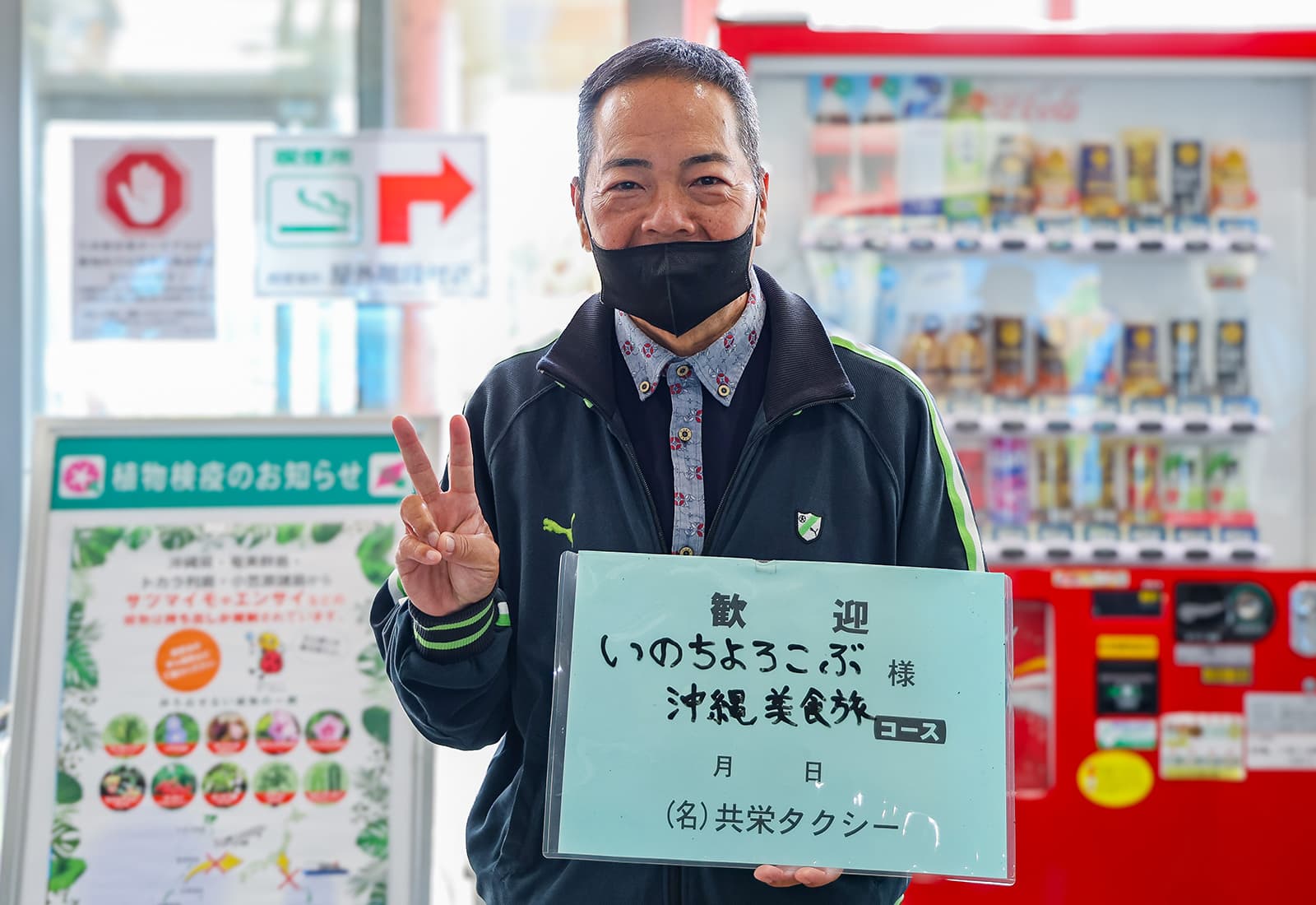 30分ほど飛行機に乗り、久米島に到着。島で最初にお会いしたのはタクシーの運転手さん。その笑顔から島の明るさが伝わってきます。
