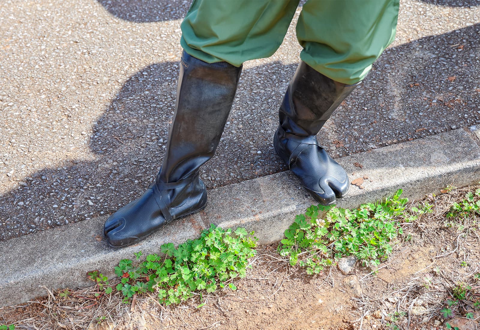 粘土質な土は想像よりも固く、クワに全体重をかけて掘り起こします。