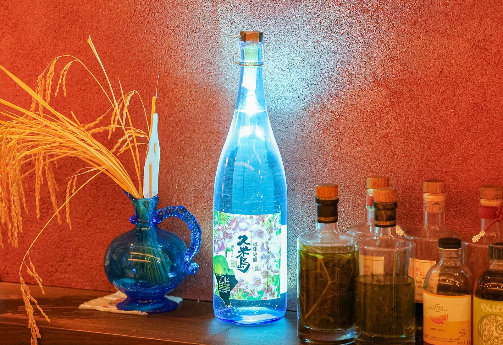 目の前には、米島酒造の泡盛「久米島」のボトル。