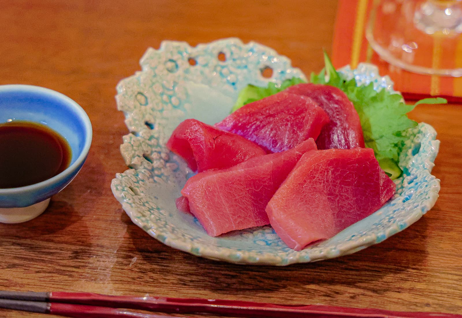 お皿の奥から順に、天身、赤身、中とろ。