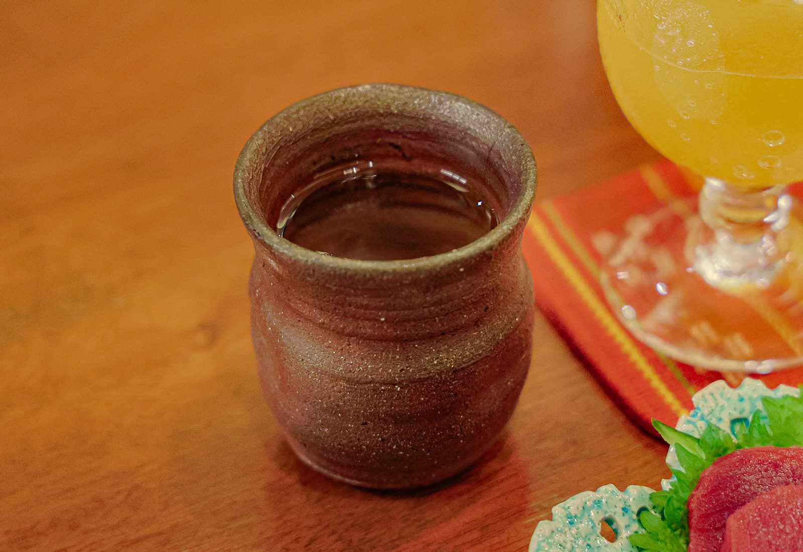 ラフテーをひと口。そして泡盛を、唇を湿らす程度に。ほんの少し、ちびりちびり。すると、口の中に残る甘味やコクがすっと伸び、またタレの濃さがくっきりと輪郭を持って感じられる。