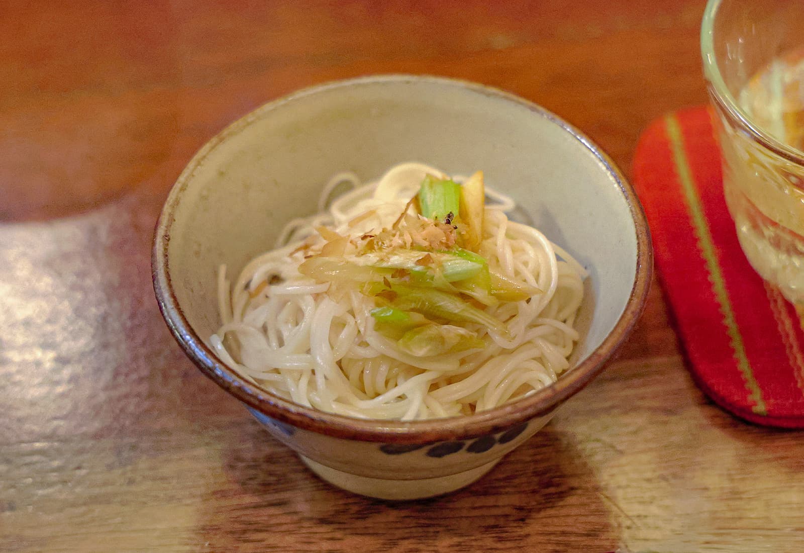 今日採れたばかりの久米島の島らっきょうが、そっとソーミンタシヤーに添えられています。凛とした島らっきょうの旨味と、出汁を吸ったソーミンタシヤーのやさしい味わい。その組み合わせを楽しんでほしいという直子さんの思いが込められた、素朴でありながら土地の記憶がしっかりと息づく一品でした。