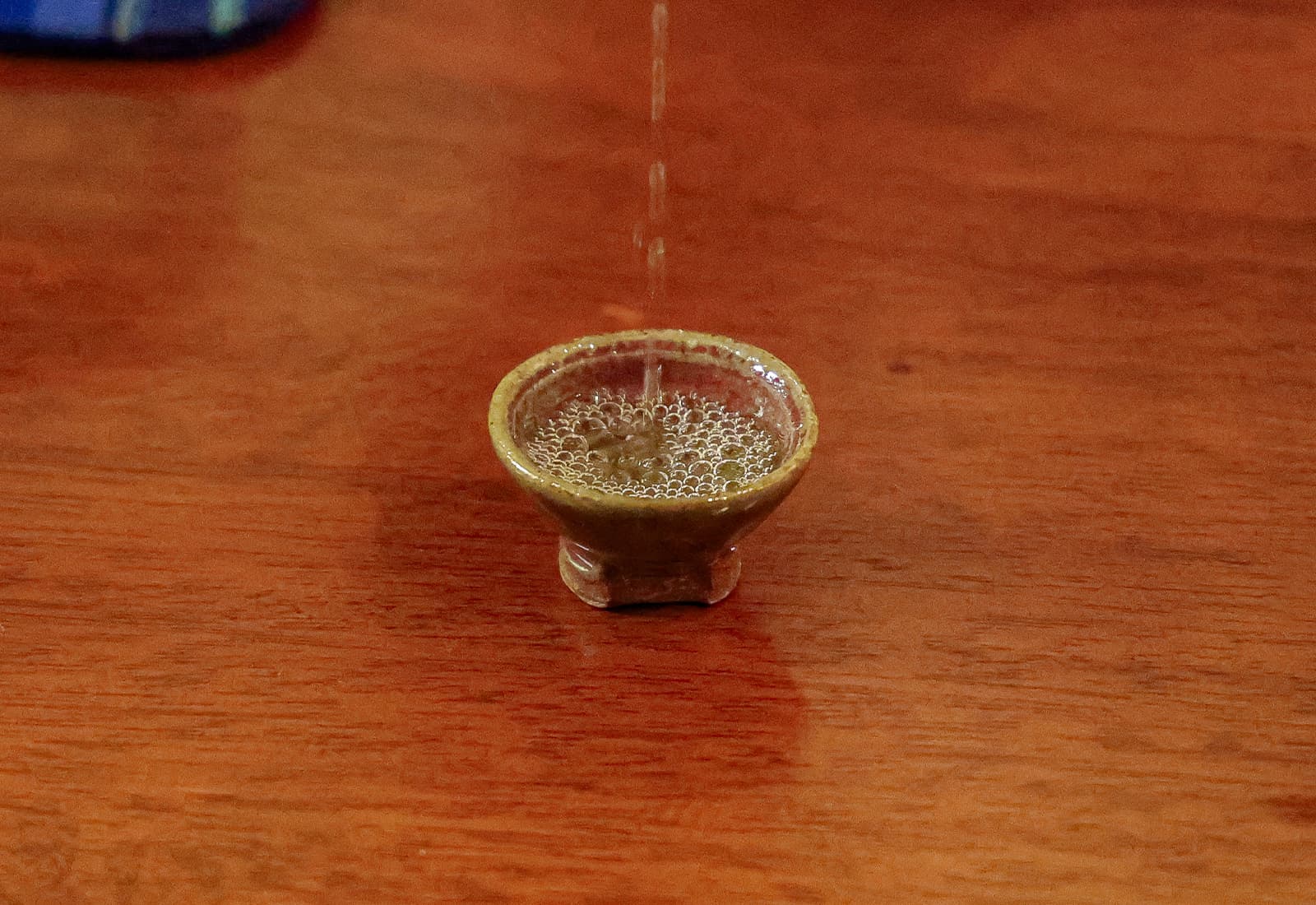すると比嘉さんは、すっと立ち上がり、高い位置から泡盛を注ぎ始めます。