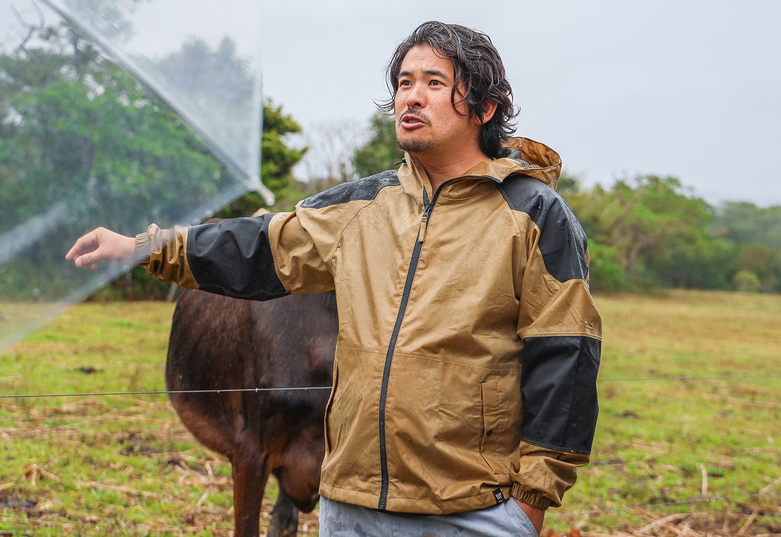 しかし、この日はあいにくの雨。本来であれば放牧地を見学し、展望台から広大な景色を見渡す予定でしたが、足元が滑りやすい状況もあり、見学は残念ながら一部のみとなりました。