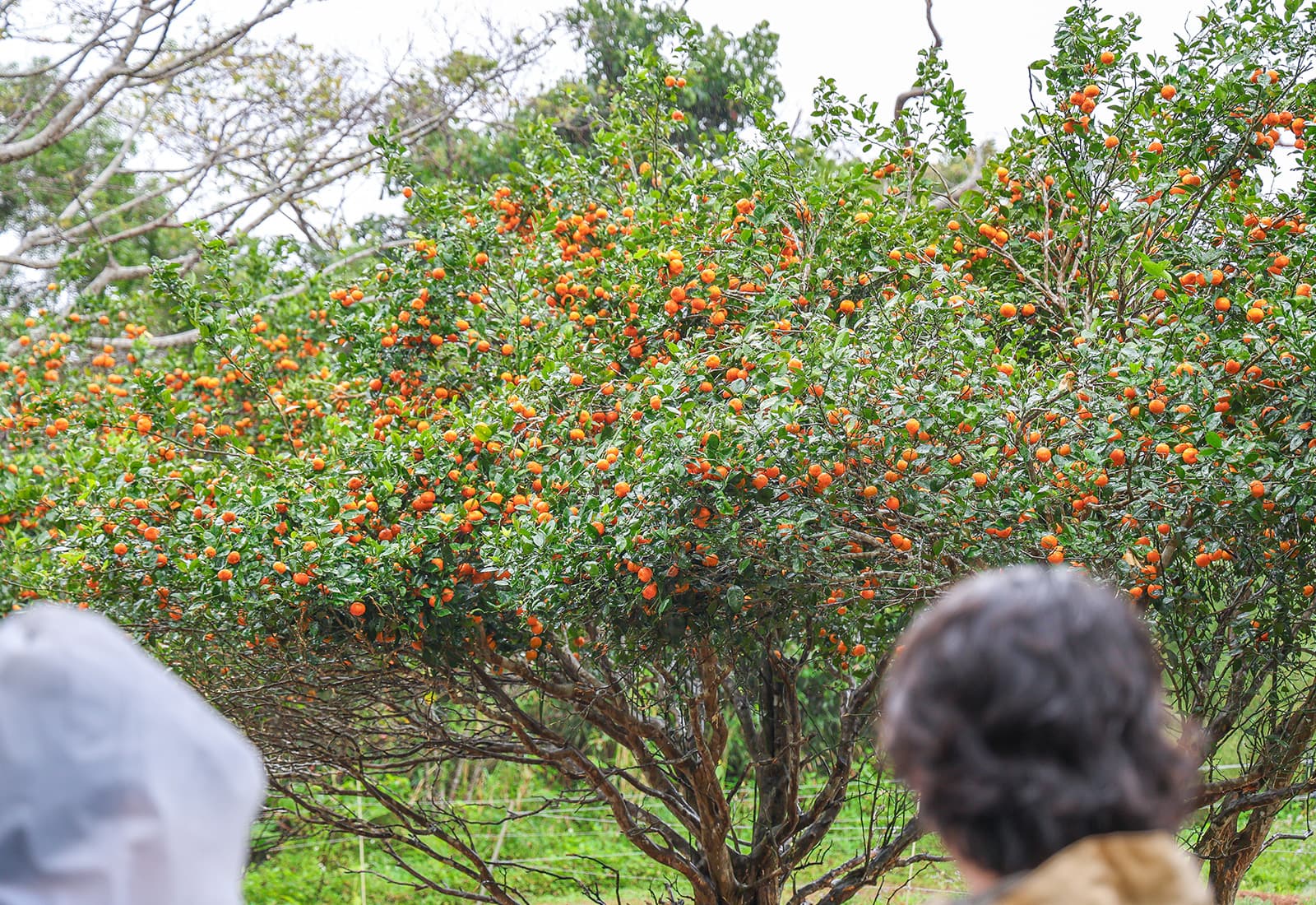 この時期、シークヮーサーはちょうど完熟を迎えていました。木の下のほうに実る果実は、すべて牛たちのごちそう。背伸びをするようにして、器用に食べるのだそうです。