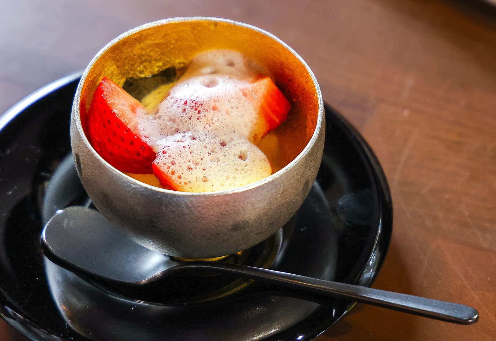 【錫の器に入った苺のブランマンジェ シトラスの香り】