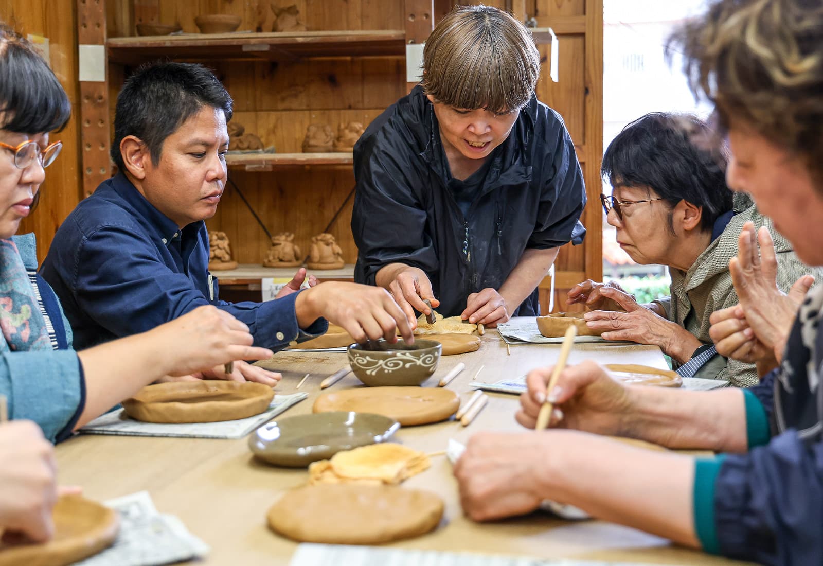 若菜さんのお話を伺ったあとは、いよいよやちむん作り体験へ。「水・森・土」の旅で、壺屋はまさに「土」の最終章。
